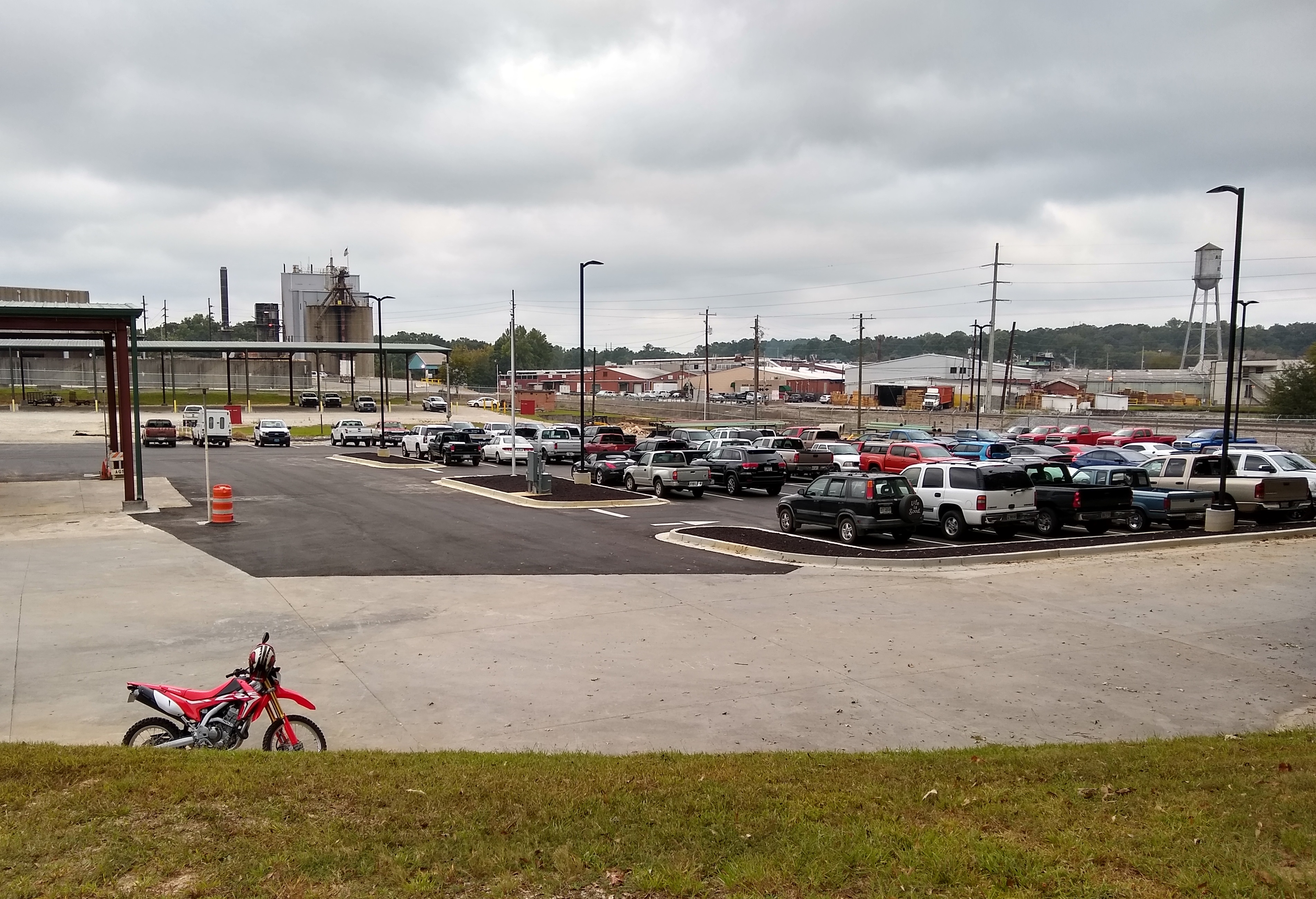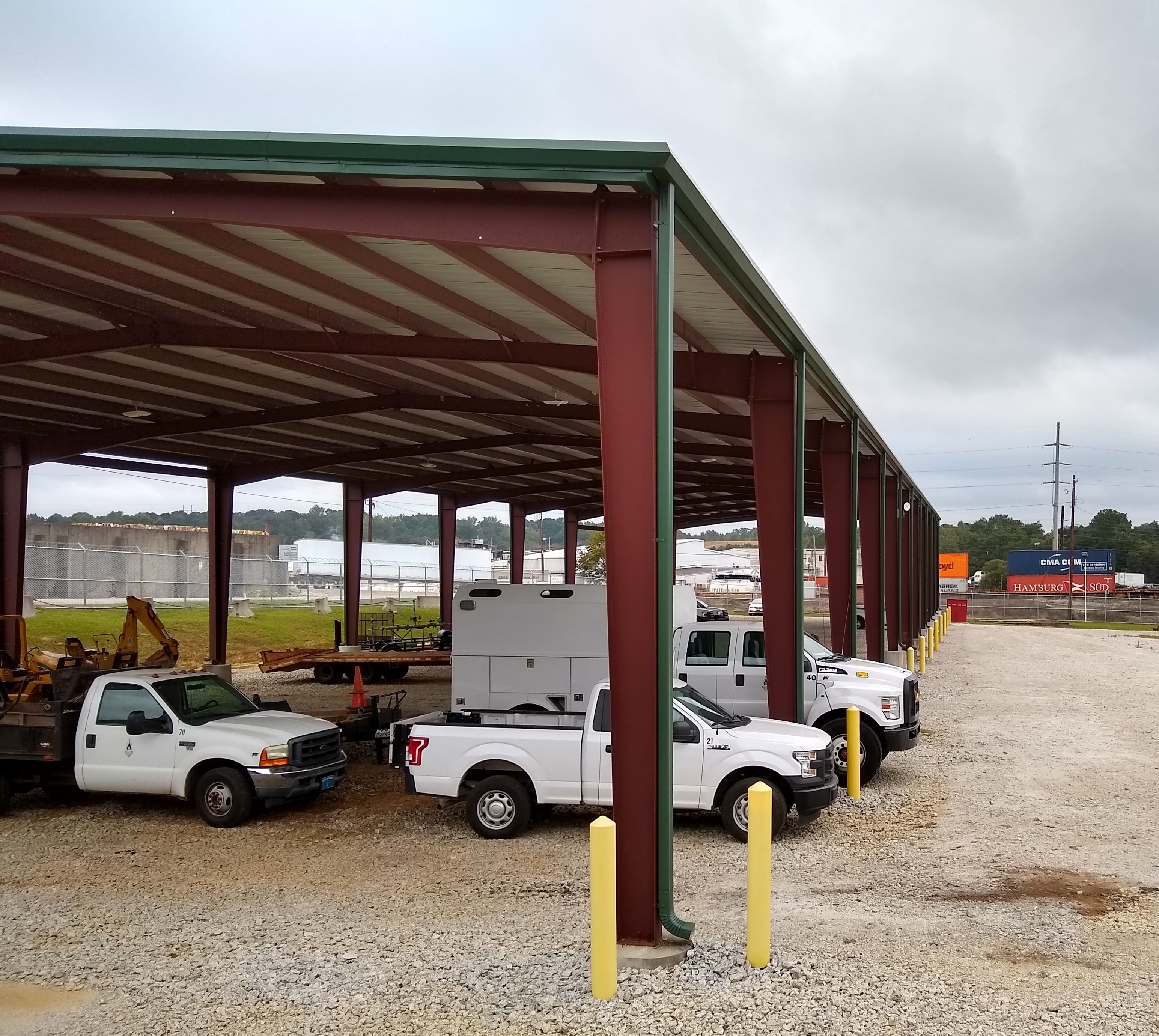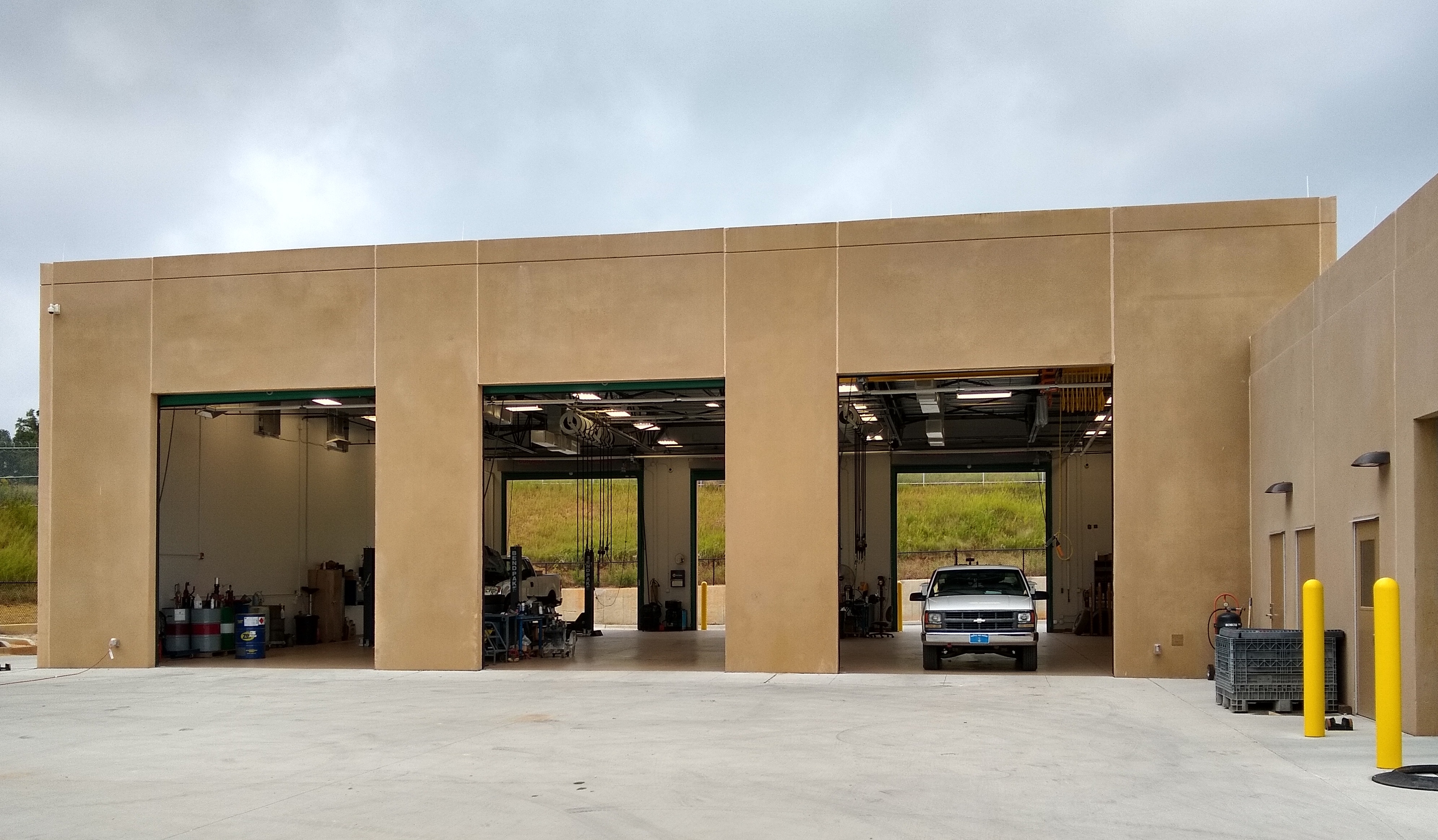 The project involved preparation of civil engineering plans to support the construction of covered parking structures for maintenance vehicles, a storage building, new headquarters building, and new employee parking lot. The project construction was phased over the last 3 years in order to keep the facility in operation. Click any photo below to enlarge.
