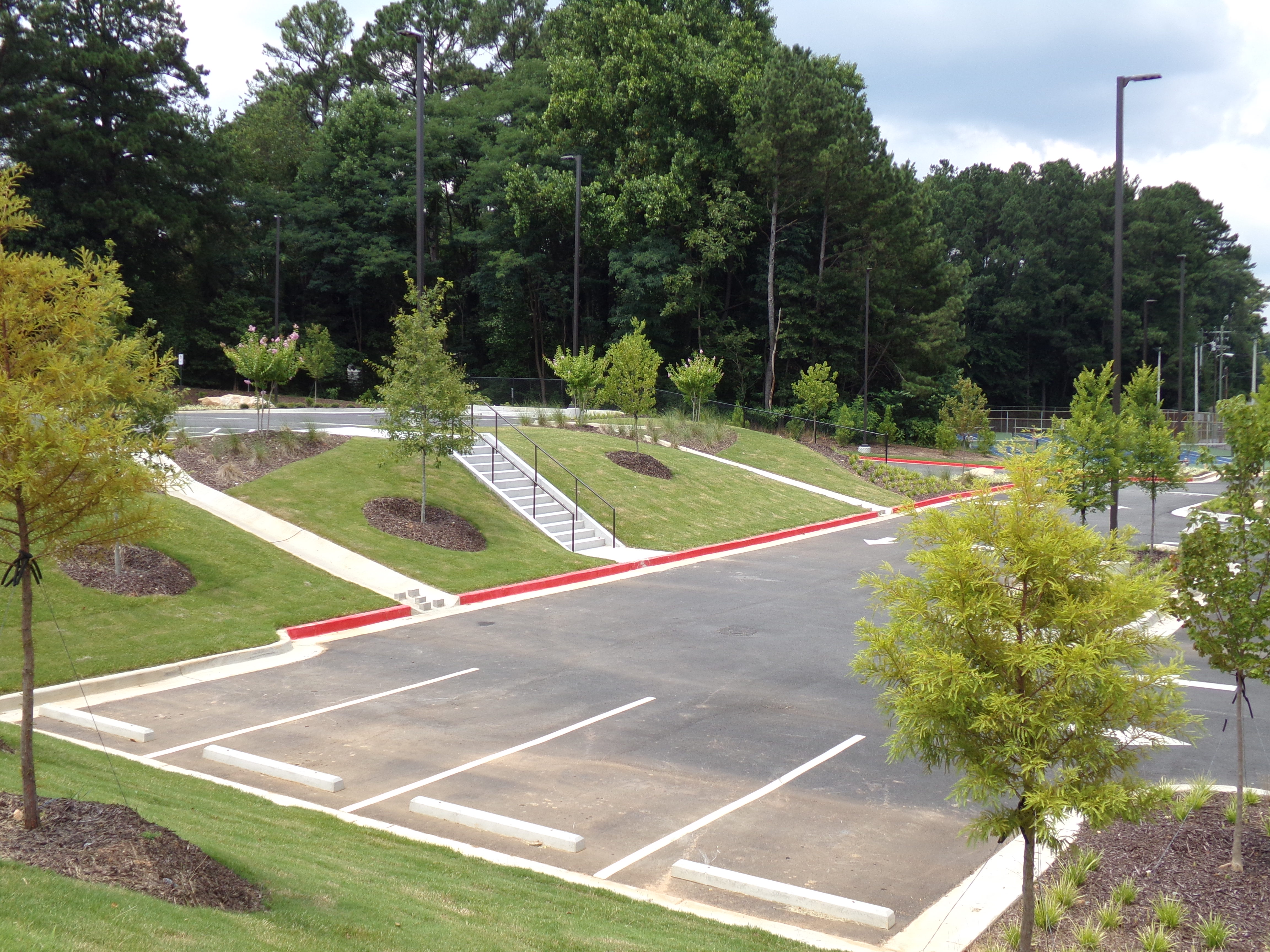 The Sewell Mill Library and Cultural Center project consisted of the construction of a new library and cultural center to replace the existing library, detention pond and shared entrance drive with Sewell Mill Park. Click on the image to view a larger photo.
